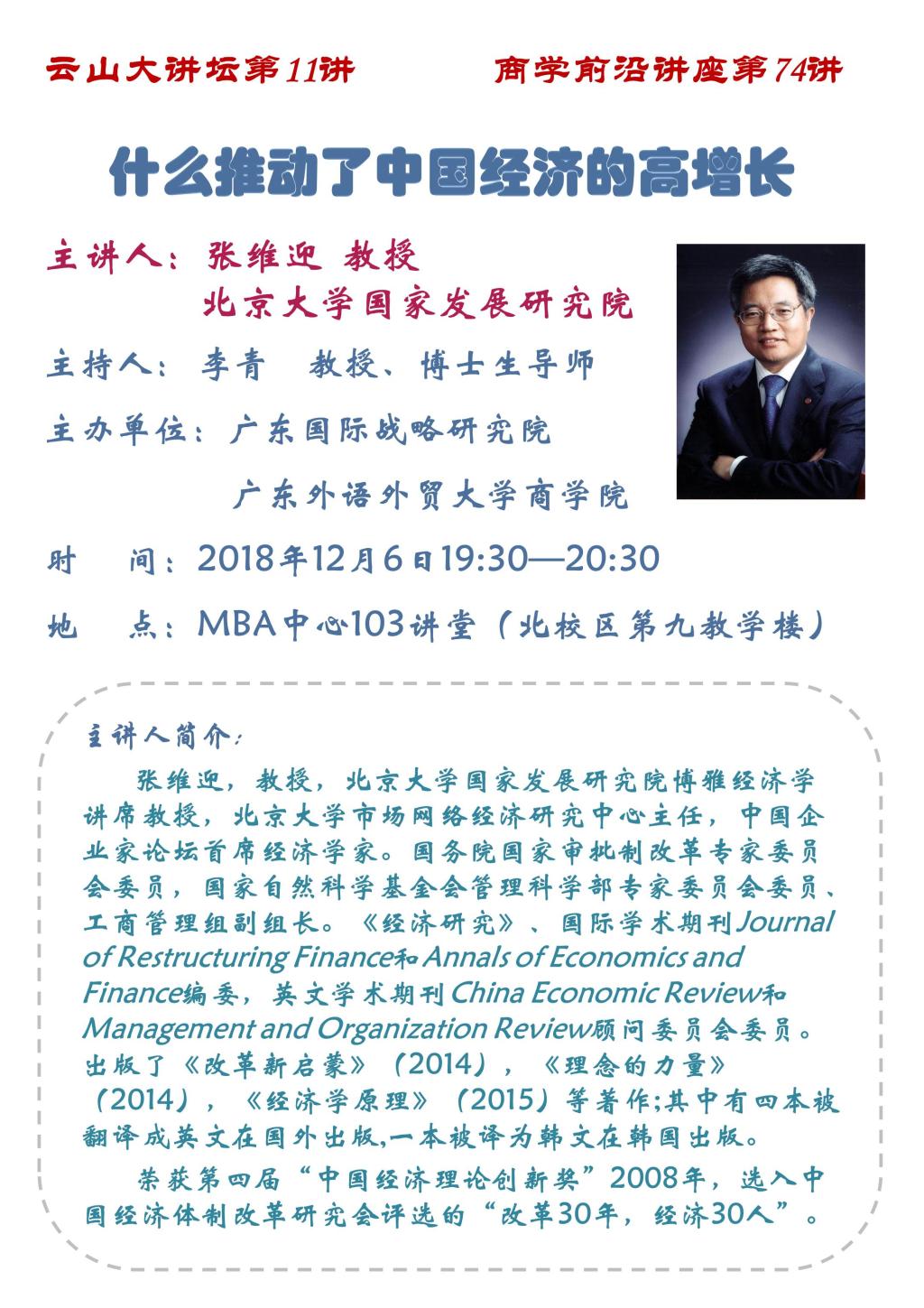 云山大讲坛第11讲、商学前沿讲座第74讲预告