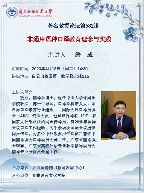 著名教授论坛第582讲:非通用语种口译教育理念与实践