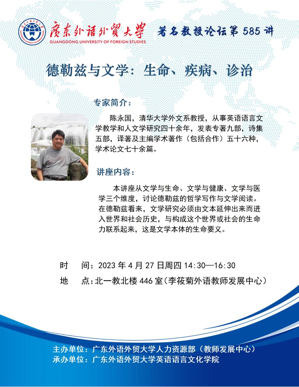 著名教授论坛第585讲:德勒兹与文学:生命、疾病、诊治