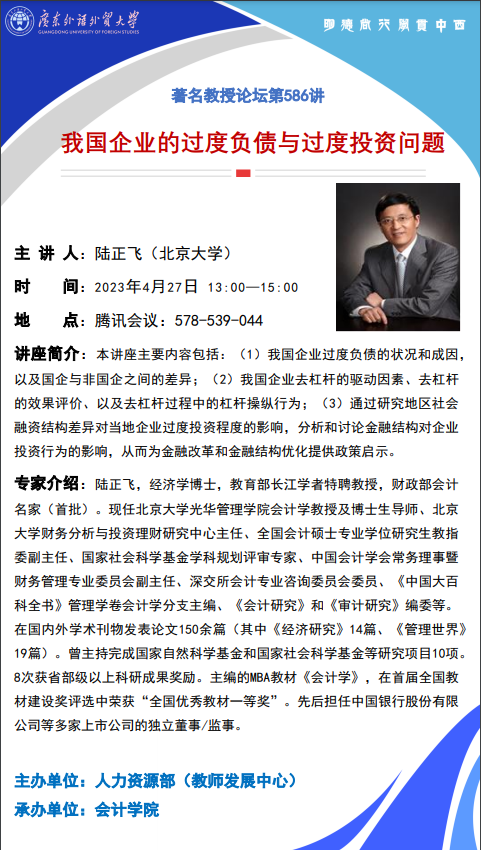 著名教授论坛第586讲:我国企业的过度负债与过度投资问题