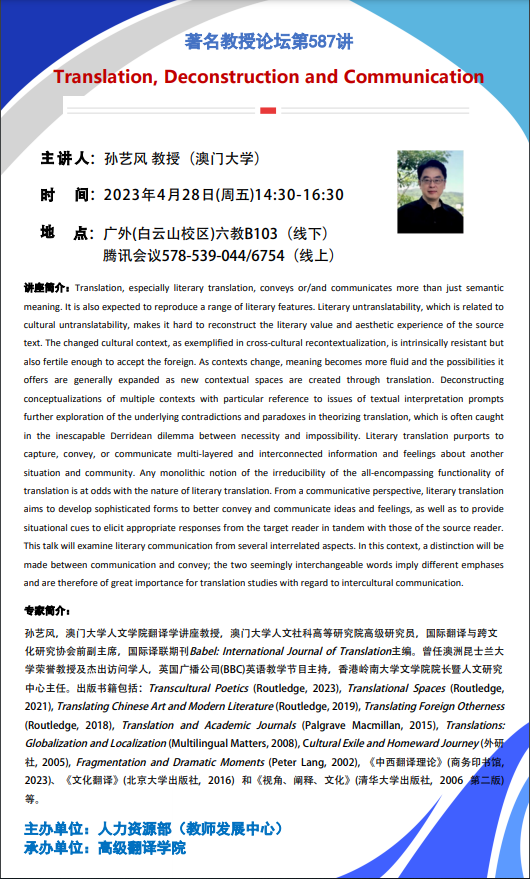 著名教授论坛第587讲: Translation, Deconstruction and Communication