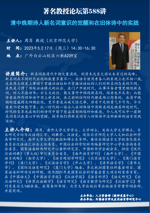 著名教授论坛第588讲:清中晚期诗人新名词意识的觉醒和在旧体诗中的实践