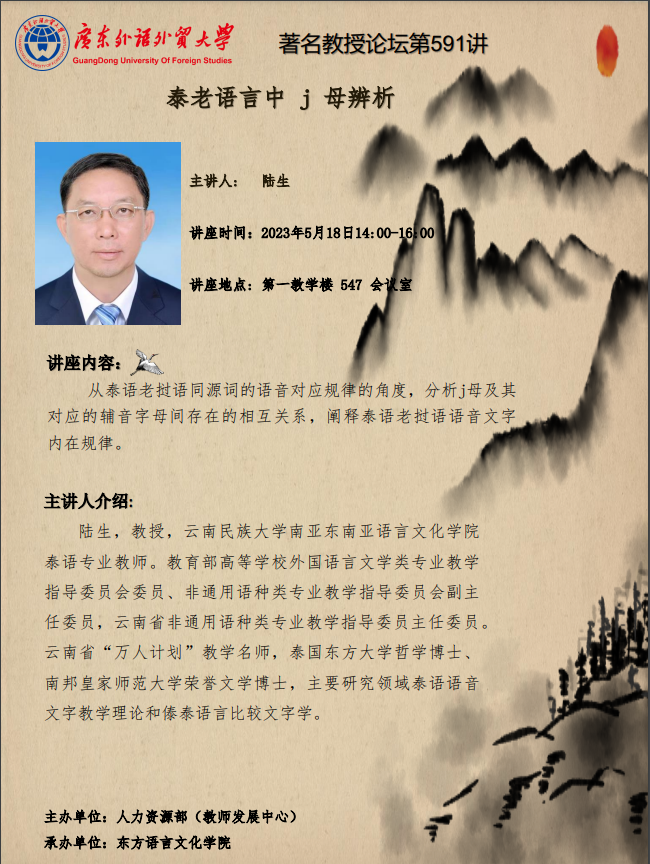 著名教授论坛第591讲:泰老语言中 j 母辨析