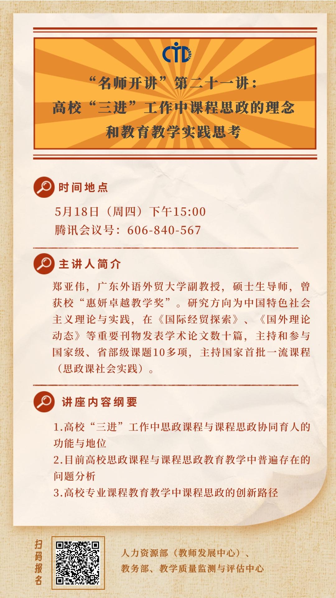 “名师开讲”第二十一讲:高校“三进”工作中课程思政的理念和教育教学实践思考