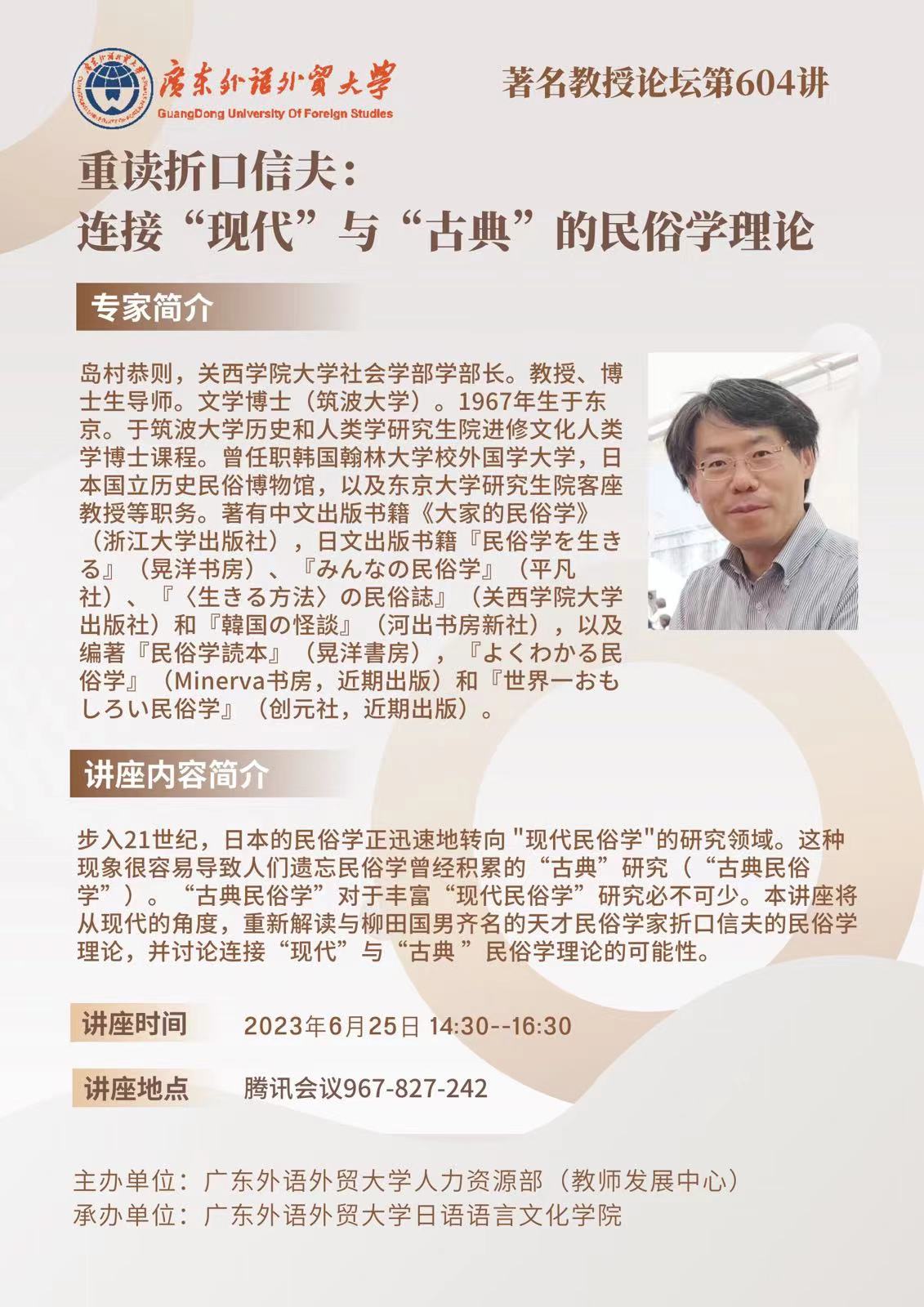 著名教授论坛第604讲:重读折口信夫:连接“现代”与“古典”的民俗学理论