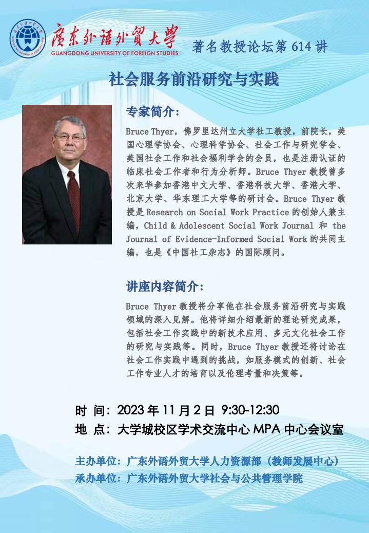 著名教授论坛第614讲:社会服务前沿研究与实践