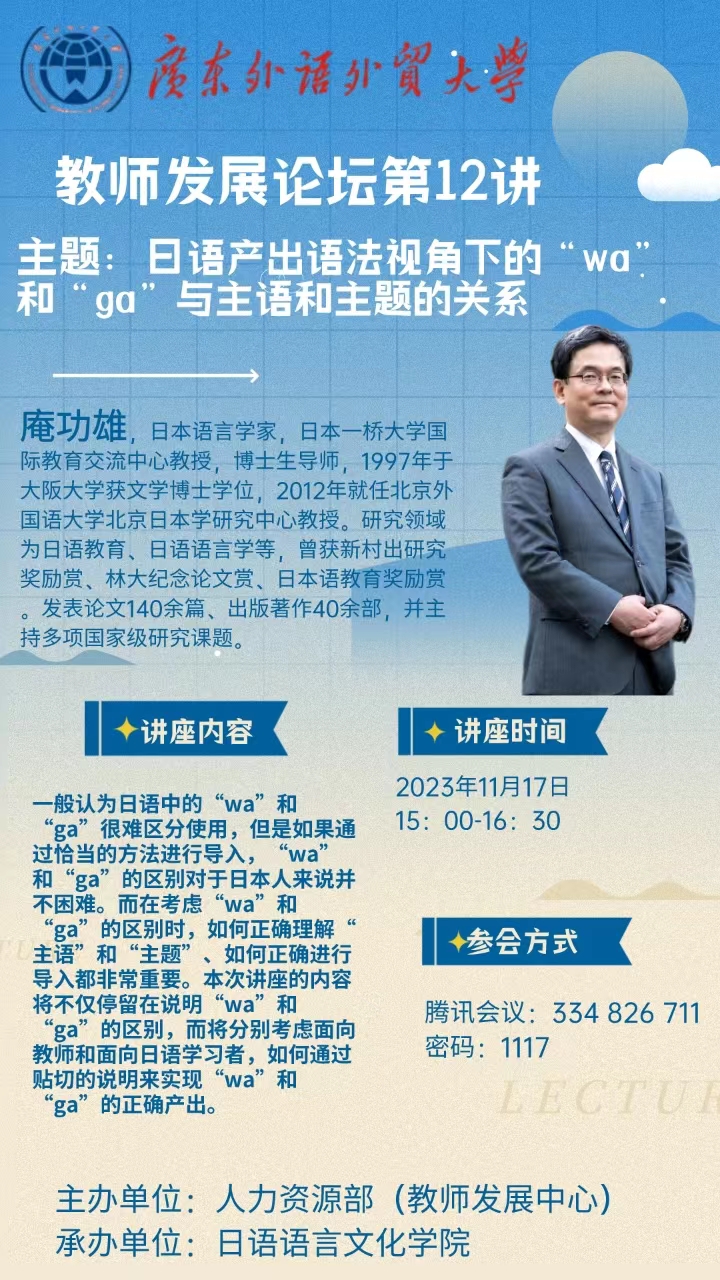 教师发展论坛第12讲:日语产出语法视角下的“wa”和“ga”与主语和主题的关系
