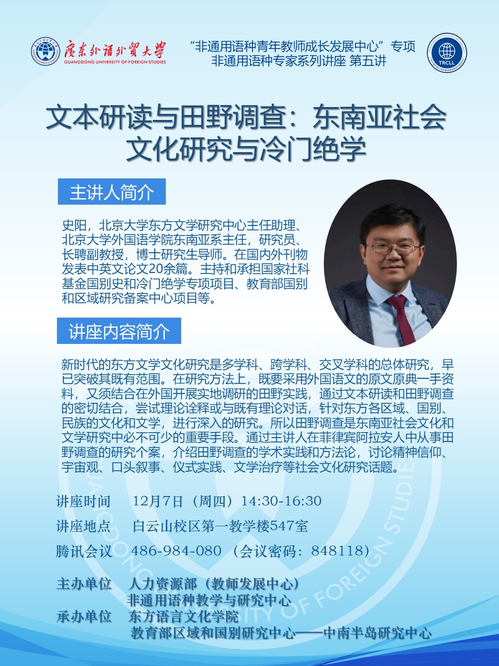非通用语种专家系列讲座第五讲:文本研读与田野调查:东南亚社会文化研究与冷门绝学