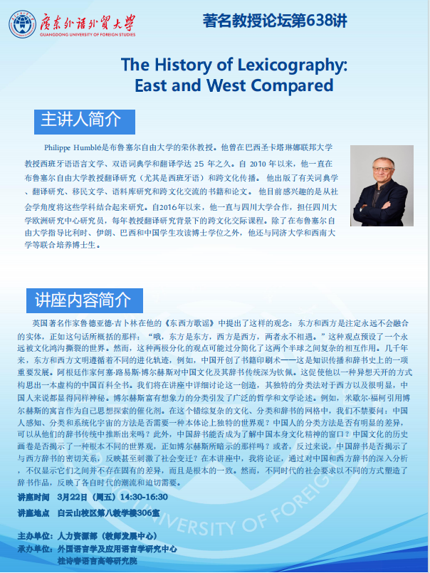 著名教授论坛第638讲:The History of Lexicography: East and West Compared(辞书史:东西方对比分析)