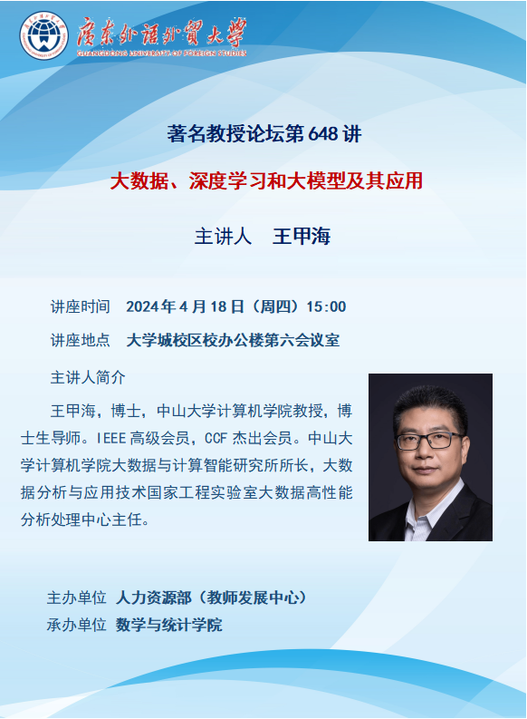 著名教授论坛第648讲:大数据、深度学习和大模型及其应用