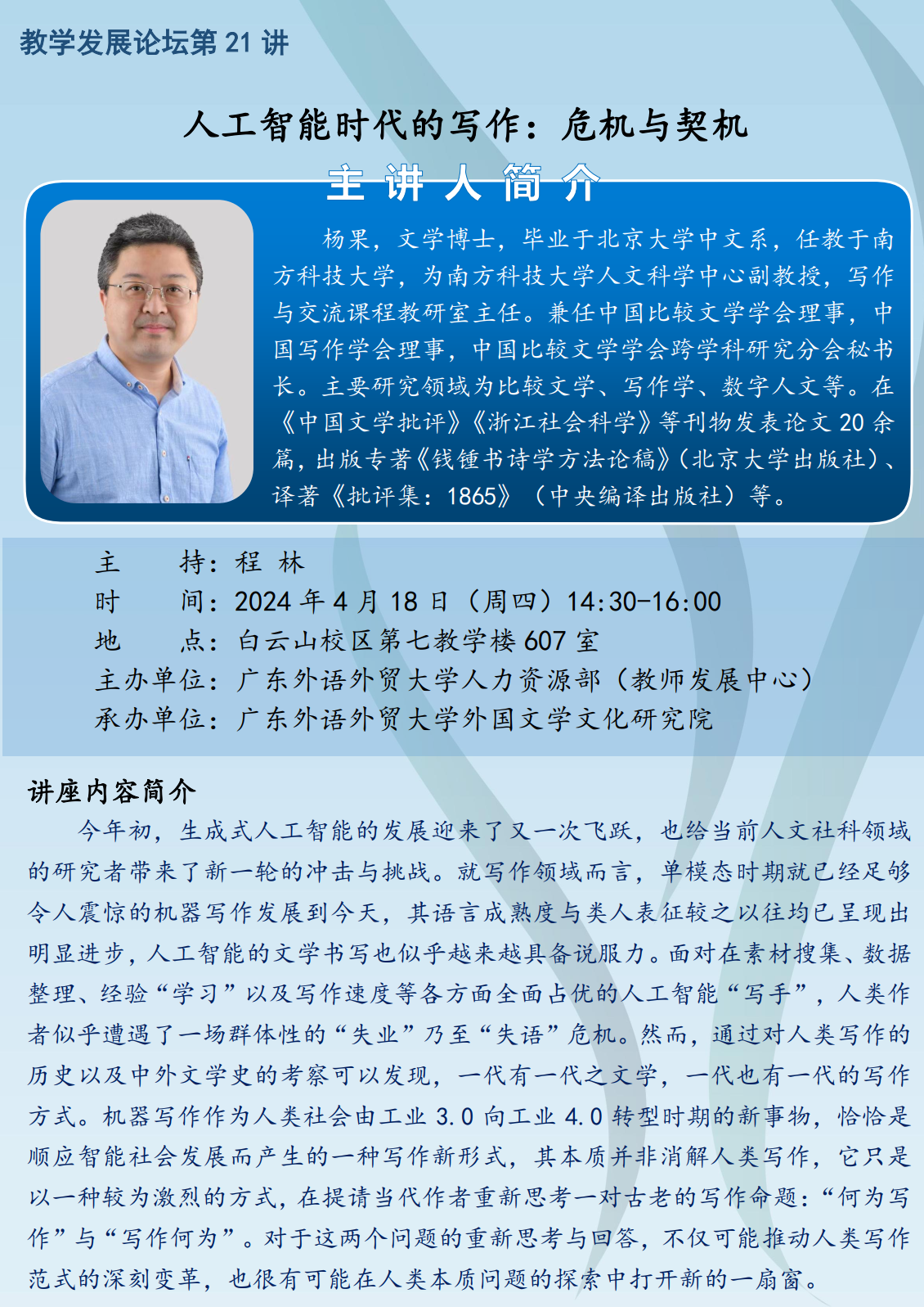 教学发展论坛第21讲:人工智能时代的写作:危机与契机