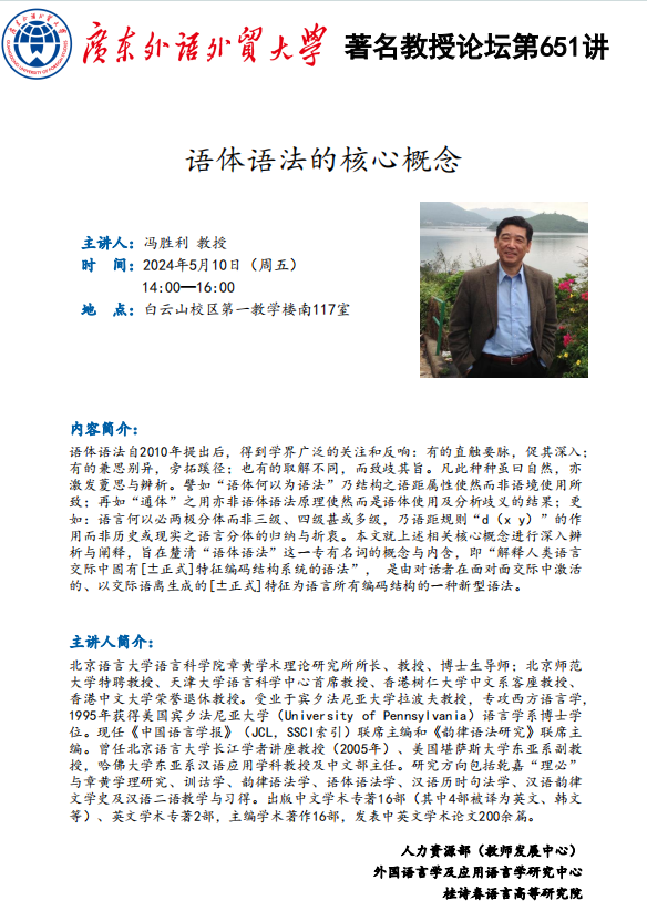 著名教授论坛第651讲:The Key Concepts of Register Grammar(语体语法的核心概念)