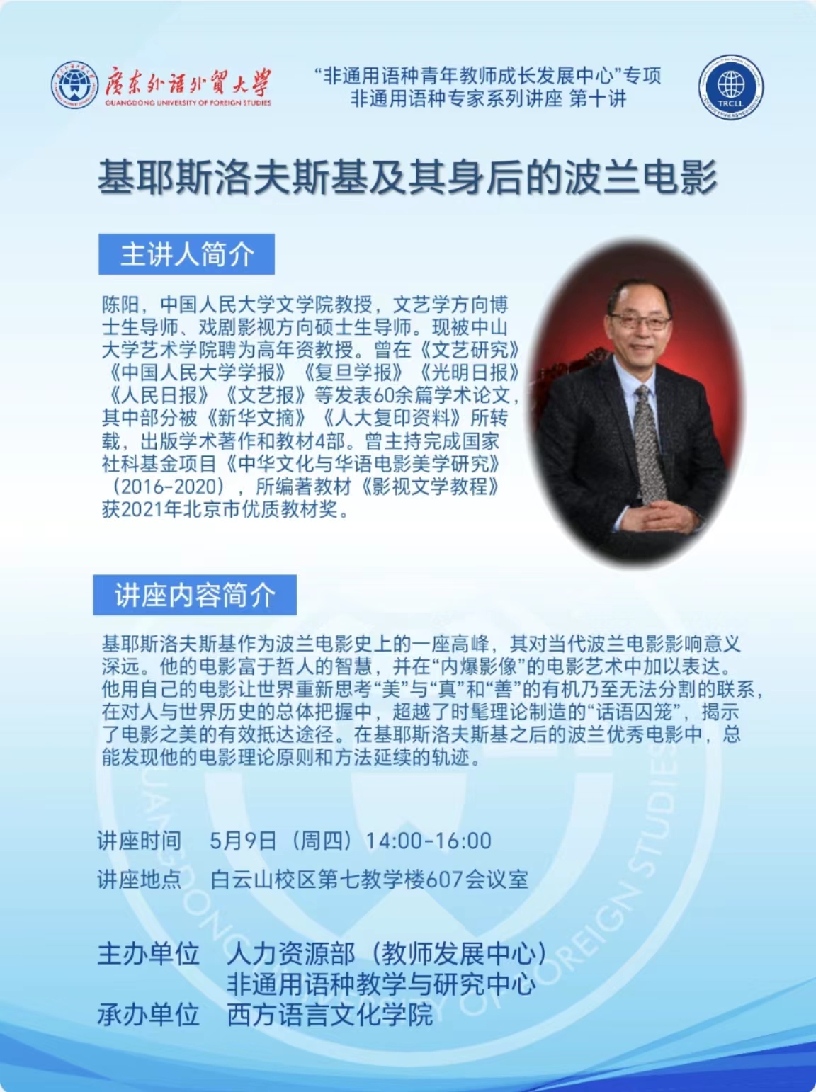 非通用语种专家系列讲座第十讲:基耶斯洛夫斯基及其身后的波兰电影