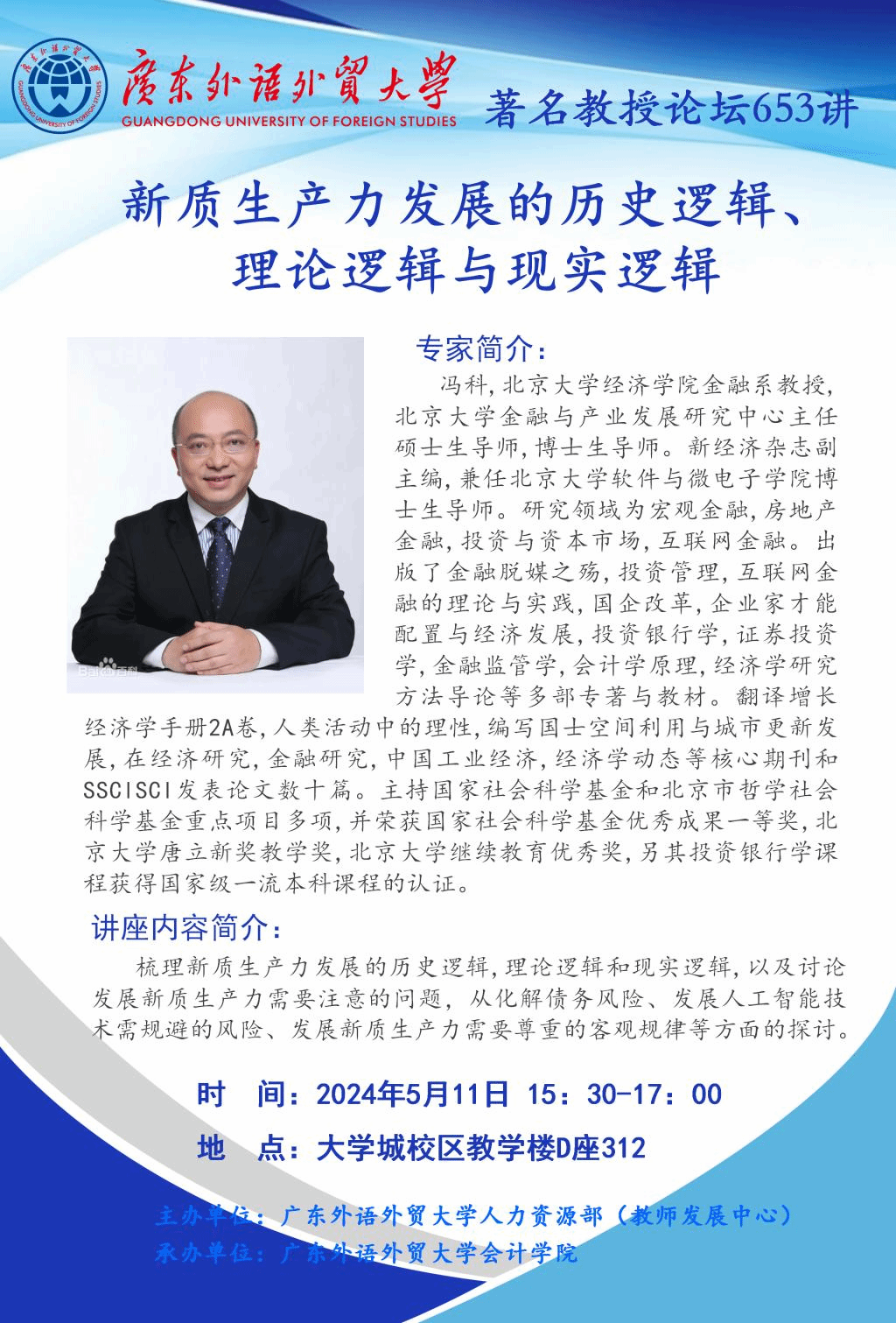 著名教授论坛第653讲:新质生产力发展的历史逻辑、理论逻辑与现实逻辑