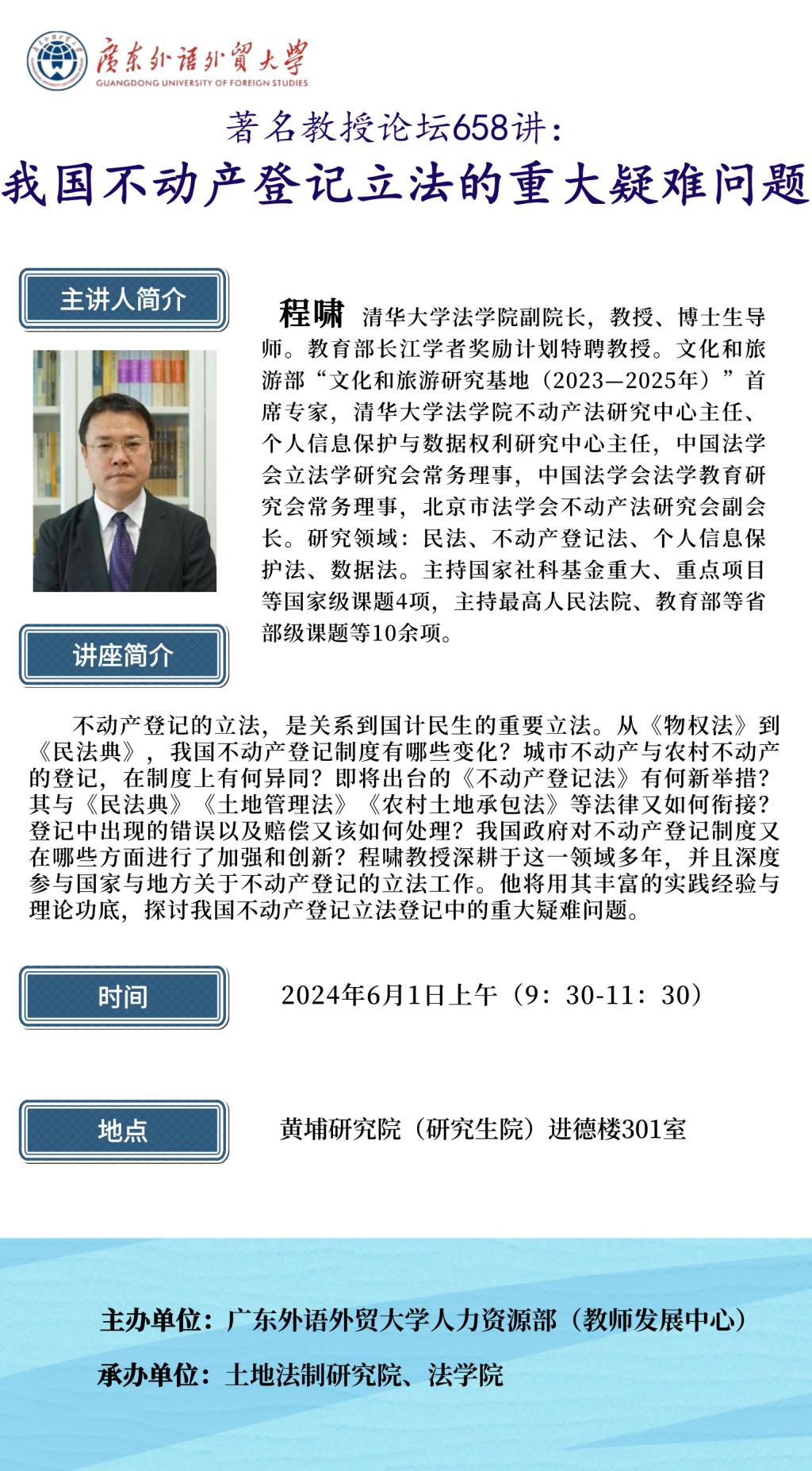 著名教授论坛 658讲:我国不动产登记立法的重大疑难问题