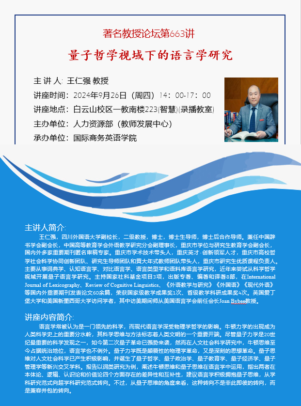 著名教授论坛第663讲:量子哲学视域下的语言学研究