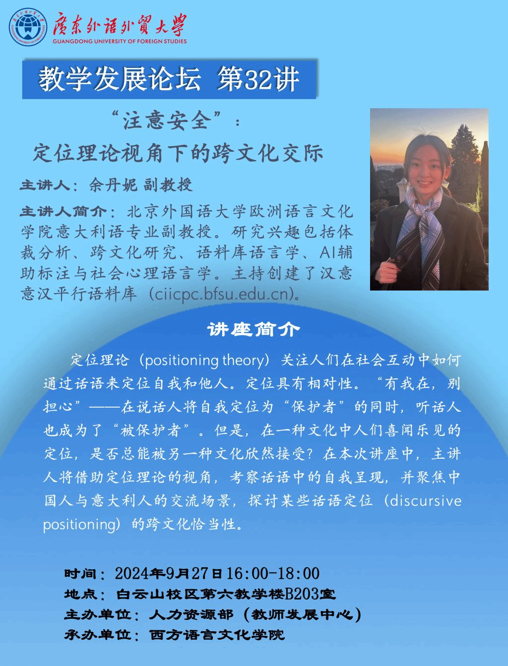 教学发展论坛第32讲:“注意安全”:定位理论视角下的跨文化交际