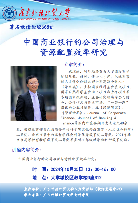 著名教授论坛第668讲:中国商业银行的公司治理与资源配置效率研究