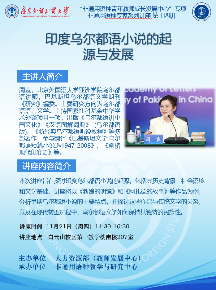 非通用语种专家系列讲座第十四讲:印度乌尔都语小说的起源与发展