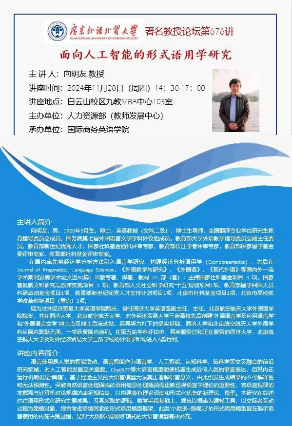 著名教授论坛第676讲:面向人工智能的形式语用学研究