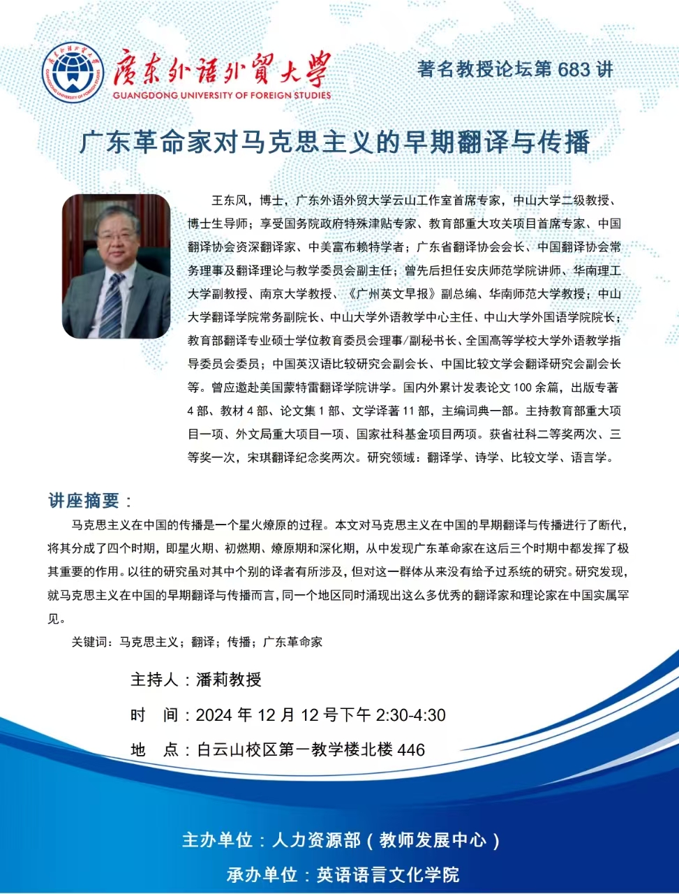 著名教授论坛第683讲暨云山教师思政工作坊第六期:广东革命家对马克思主义的早期翻译与传播