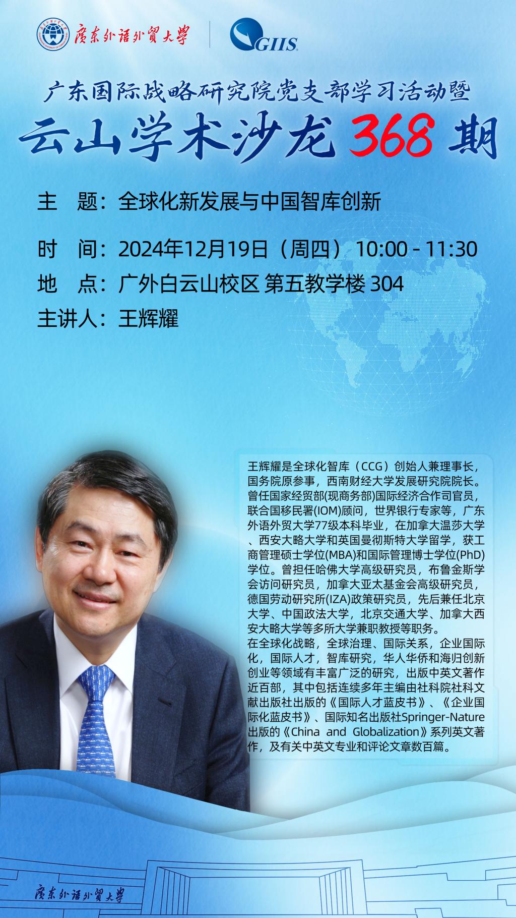 云山学术沙龙第368期:全球化新发展与中国智库创新