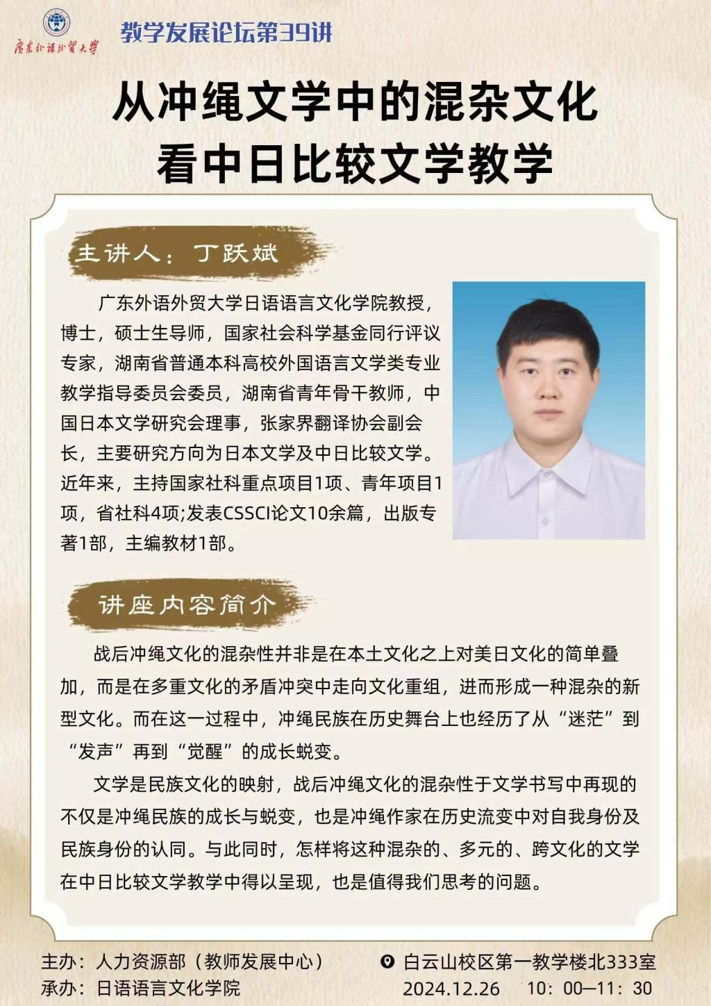 教学发展论坛第39讲:从冲绳文学中的混杂文化看中日比较文学教学