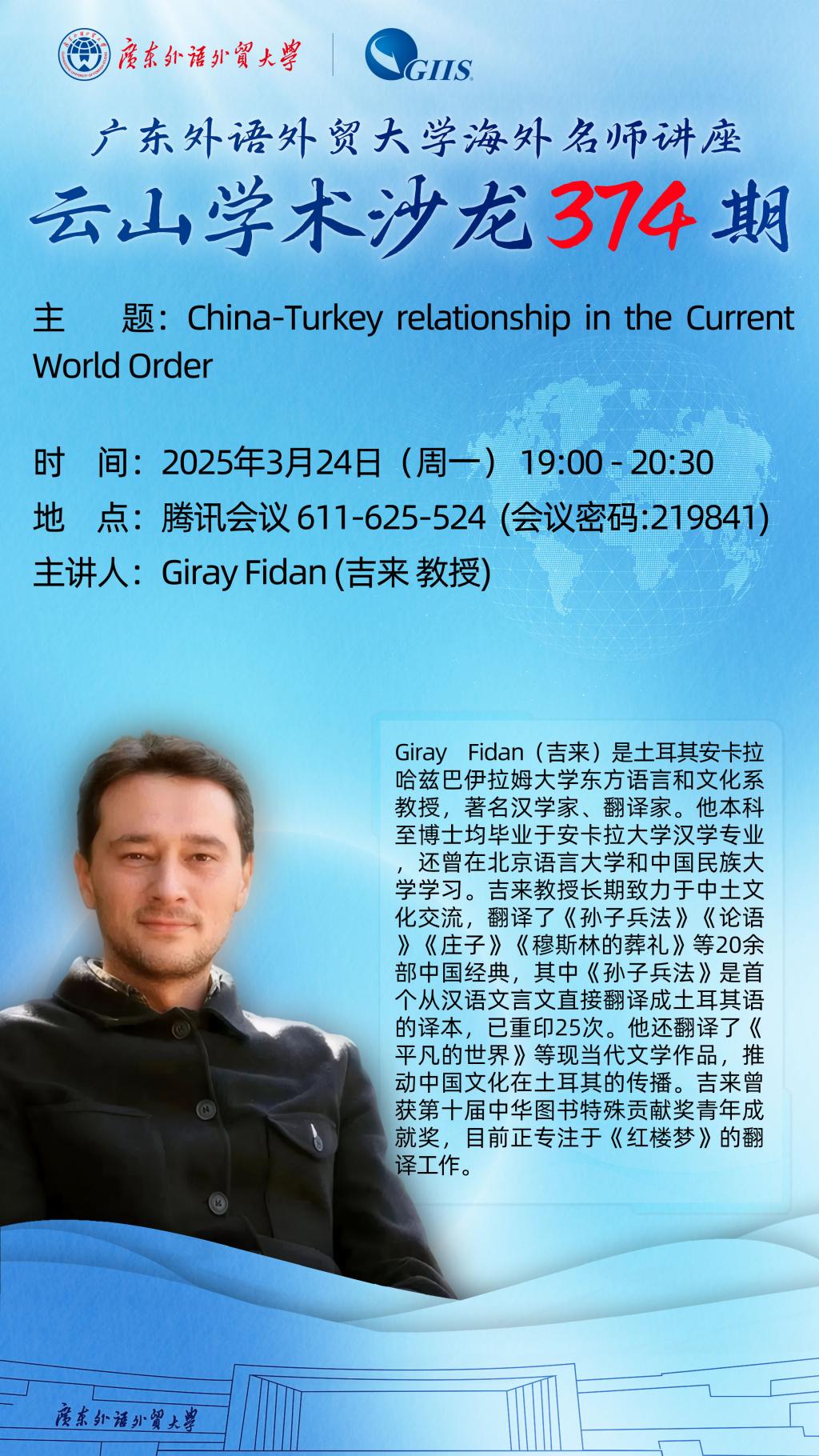云山学术沙龙374期:China-Turkey relationship in the Current World Order