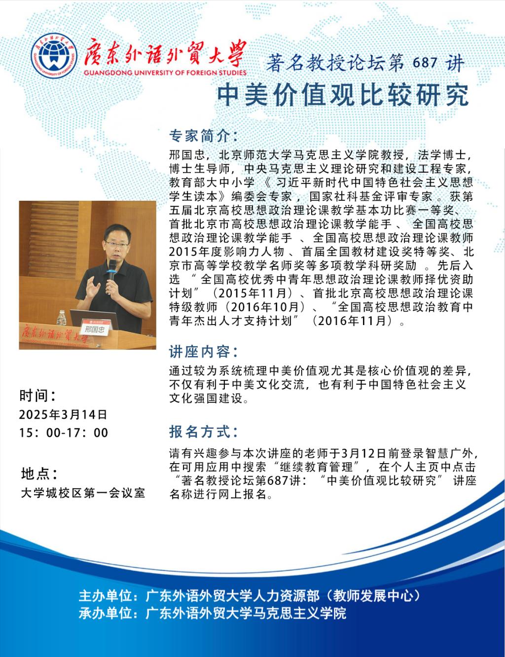 著名教授论坛第687讲:中美价值观比较研究暨云山教师思政工作坊第七期