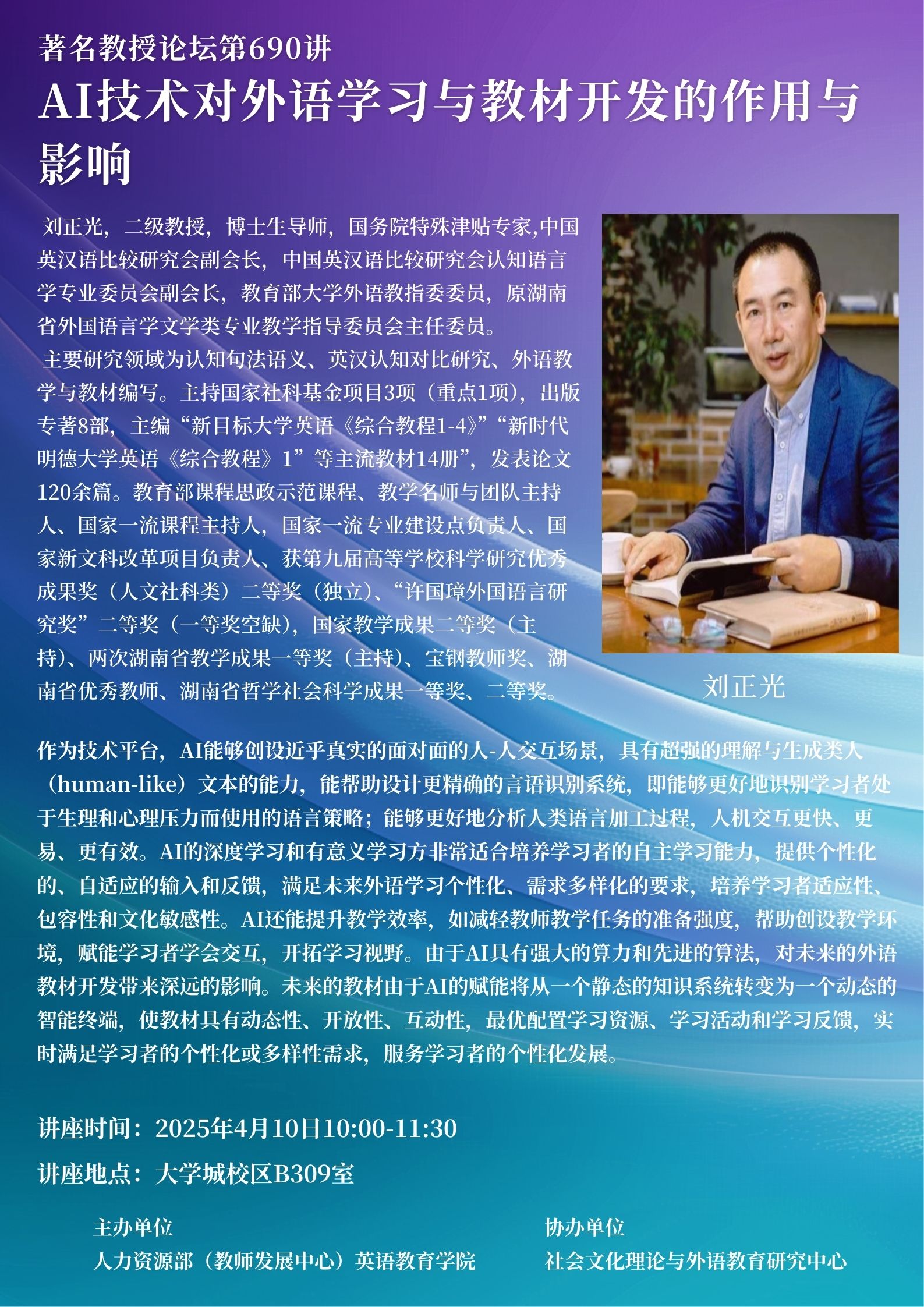 著名教授论坛第690讲:AI技术对外语学习与教材开发的作用与影响