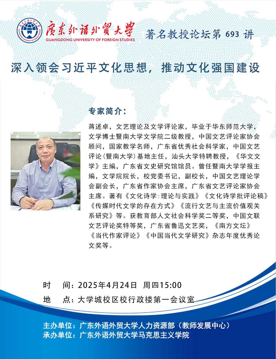 著名教授论坛第693讲暨云山教师思政工作坊第八期:深入领会习近平文化思想,推动文化强国建设