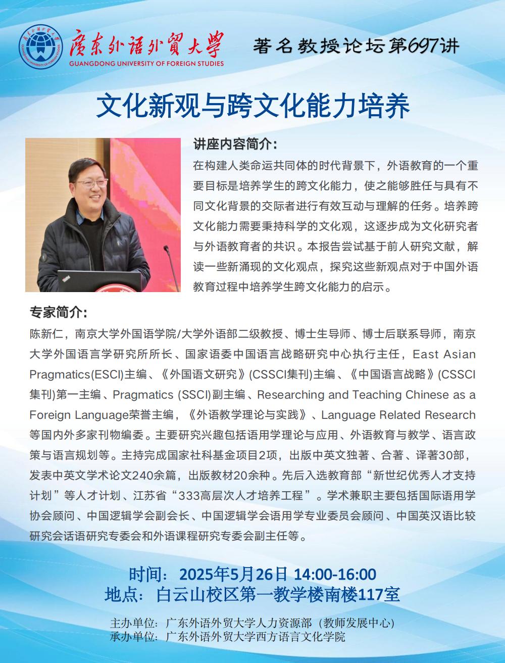 著名教授论坛第697讲:文化新观与跨文化能力培养