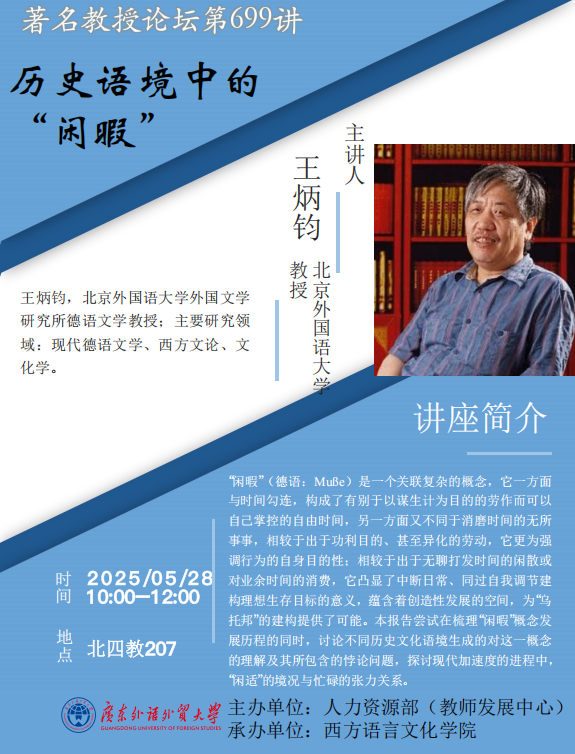 著名教授论坛第699讲:历史语境中的“闲暇”
