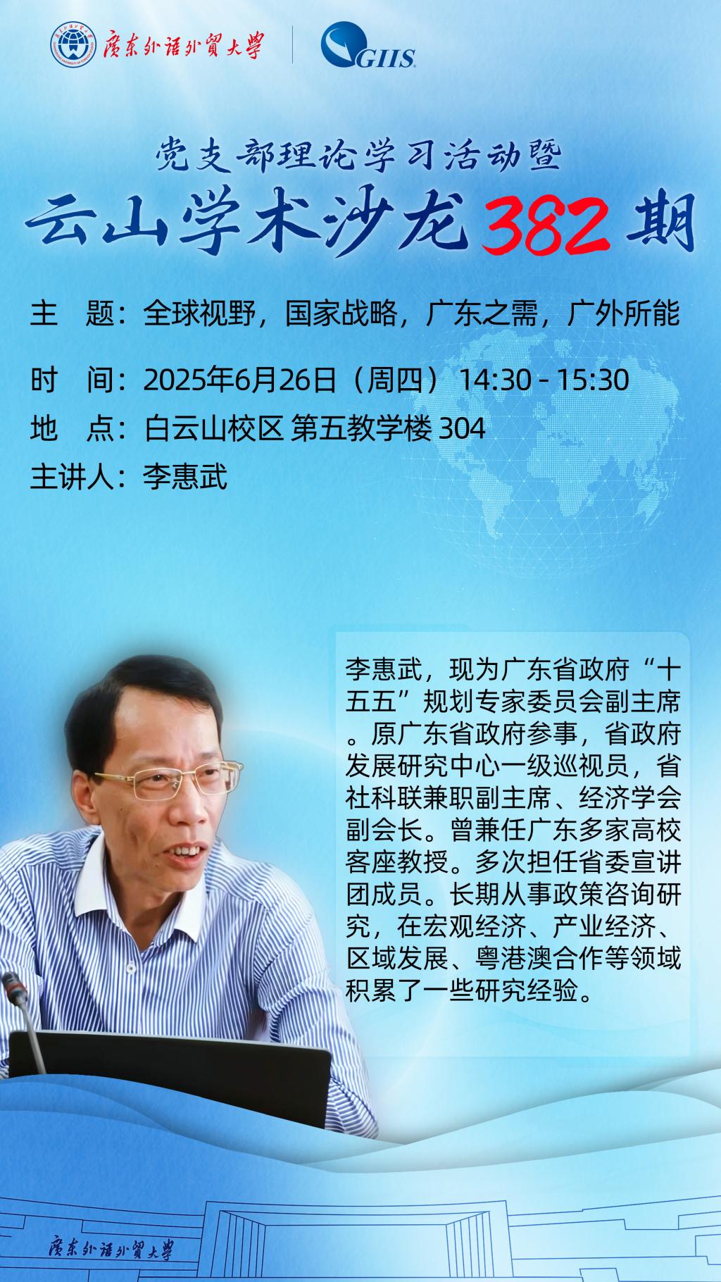 云山学术沙龙第382期:全球视野,国家战略,广东之需,beat365所能