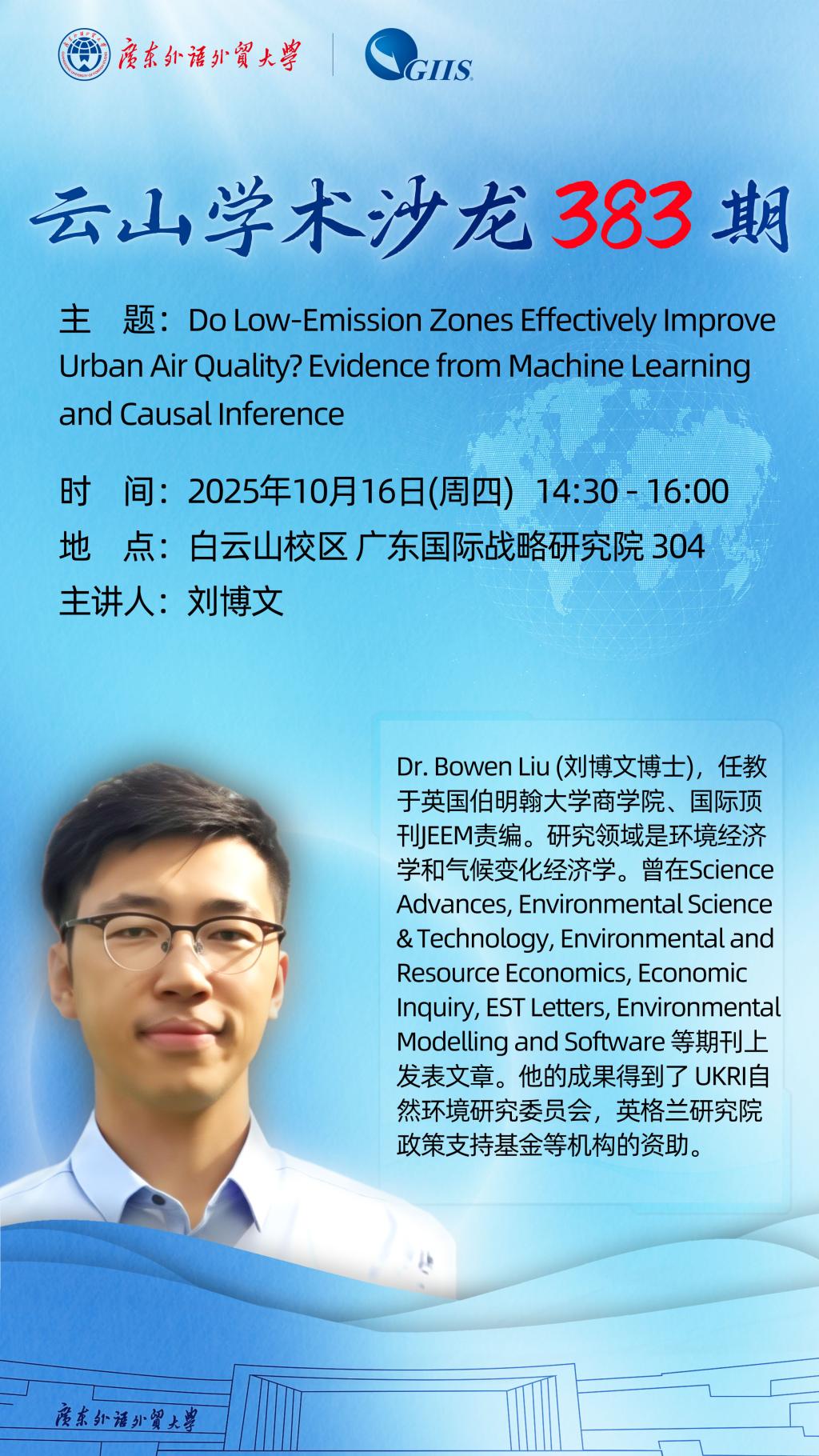 云山学术沙龙383期: Do Low-Emission Zones Effectively ImproveUrban Air Quality? Evidence from Machine Learning and Causal Inference