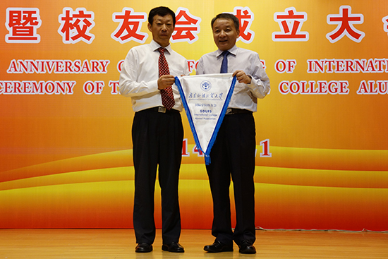 庆典后,国际学院举行了校友会成立大会。大会通报了校友会筹备情况,审议通过了校友会章程和校友会领导机构候选人名单。beat365校友总会常务副会长、副校长许国彬向国际学院校友会授旗,宣告历经一年筹备的国际学院校友会正式成立。