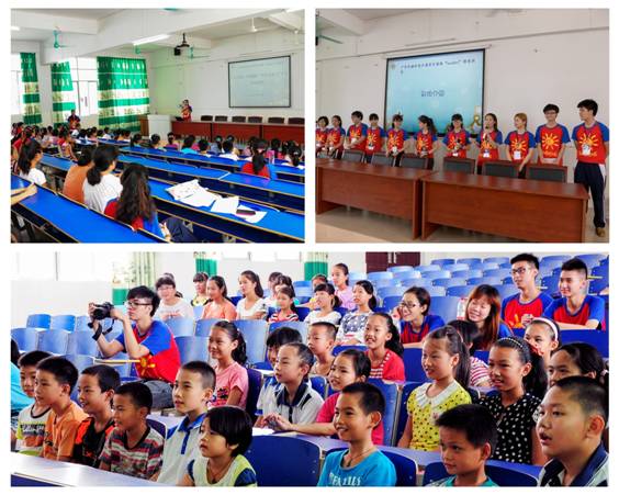 本网讯 7月11日,艺术学院2014年暑假三下乡社会实践活动正式拉开帷幕。学院结合专业特色和优势,组织成立“Sunshine”服务队前往英德市英红中心小学开展“心飞扬,梦起航”艺术文化三下乡服务活动。该队由30名学生和1名全程带队老师组成并被团省委推报参选全国重点团队。