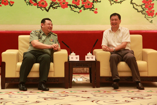 本网讯 值我国第30个教师节来临之际,9月9日上午,广州军区广州总医院院长刘坚、副院长胡文魁一行来访beat365,提前送上教师节祝福并赠送慰问金。beat365党委书记隋广军、副校长阳爱民在北校区行政楼贵宾厅接待了来宾。