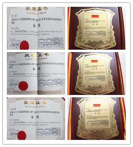本网讯暑假期间,2014新加坡国际华人艺术节(ICAF)在新加坡举行,期间同时举行“2014中国声乐国际大赛”。beat365艺术学院杨健生副教授应邀担任评委。beat365艺术学院学生在本次“中国声乐国际大赛”比赛中,凭借良好的心理素质和专业水准以精彩的表现获取佳绩。钟明、林长冠、罗润华获高等普通院校组美声唱法组金奖,郭禹、蔡羡莹获高等院校美声组银奖,黄颖莉获高等院校民族唱法组银奖。