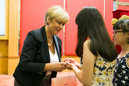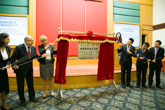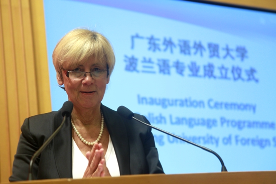 达利雅与塔德乌什也在随后的发言中,对波兰语专业在华南地区的首设表达了祝贺之情,并希望以此扩大中波的文化、经济等各领域的交流。致辞最后,达利雅还用波兰语、英语、中文三种语言对台下嘉宾说了声“谢谢。”