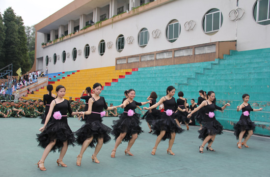 傍晚时分,经过沙场上的一天苦练,同学们迎来了休整放松的时间,就在此时,由学校社团联合会联合各大社团举行的军训慰问活动“不期而至”,为大家在夏日的黄昏里带来一点清凉。吉他协会的吉他手们抱起吉他引吭高歌,一曲原创歌曲《beat365!beat365!》引来台下学生集体膜拜。舞协的成员穿着靓丽的舞装,踢着节奏欢快的步子,为新生们带来一支生机勃勃的舞曲。