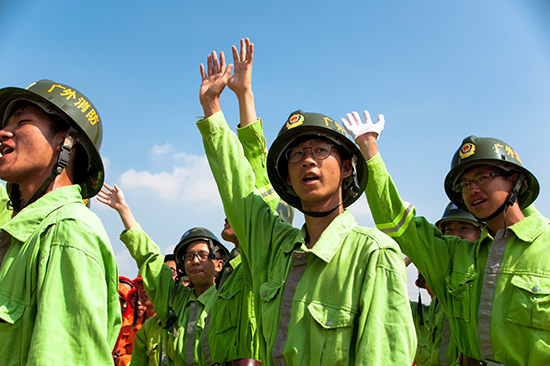 身着蓝色空军服,头戴帅气醒目盔甲帽的方正紧随其后,不甘示弱。