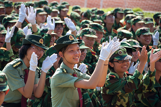 蓝天,绿草,红跑道,还有你们身上缤纷多彩的服饰;刚毅的脸庞,矫健的步伐,整齐的队列,还有你们在台下轻松的笑脸,抹泪的告别;踢正步,站军姿,擒拿手,救护队,还有你们活泼生动的小苹果舞蹈串烧,所有的这一切都让2014年9月28日这原本单调普通的一天变得缤纷多彩,刻骨铭心。Colorful Day,是你们用坚实的行动赐予它的名字!