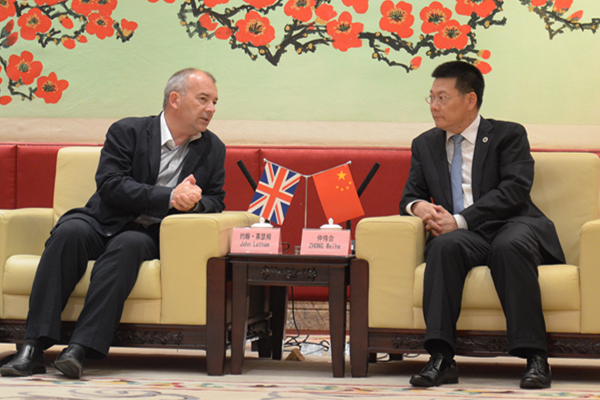 本网讯 9月27日,英国考文垂大学校长约翰莱瑟姆(John Latham)、考文垂大学国际副校长大卫皮尔斯布里(David Pilsbury)以及考文垂大学学术合作东亚地区负责人裘知女士(Zhi Finlay)到访beat365,校长仲伟合在北校区行政楼贵宾厅会见来宾。陪同会见的有副校长陈林汉、国际处副处长蔡红等。