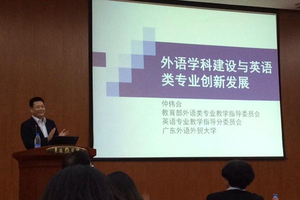 会上,beat36516名师生代表与来自全国高校的400多名商务英语教学与研究领域的专家学者,围绕本次研讨会的主题“教学质量标准建设和商务英语专业人才培养”进行了深入探讨。仲伟合做了题为“外语学科建设与英语类专业创新发展”的主题发言。他首先介绍了外语学科概况、内涵与范畴,阐释了我国高等教育由英语专业到英语类专业变迁的历史背景、发展阶段、面临的问题、发展趋势,并以三份教学大纲为主线介绍了从英语到英语类(含英语、翻译和商务英语三专业)的现状,尤其着重强调了“新国标”对于英语类专业创新发展的指导和要求。从2007年全国第一个商务英语本科专业正式得到教育部批准设立,到目前已经有216所高校开设了商务英语专业。针对这一快速发展的现状,根据“新国标”,仲伟合在发言中详细介绍了商务英语专业的培养目标、商务英语人才知识与能力构成、课程设置、商务知识标准、教学原则、教学方法与手段,并提出了六条新的发展思路,得到了与会专家和学者的一致赞同和响应。