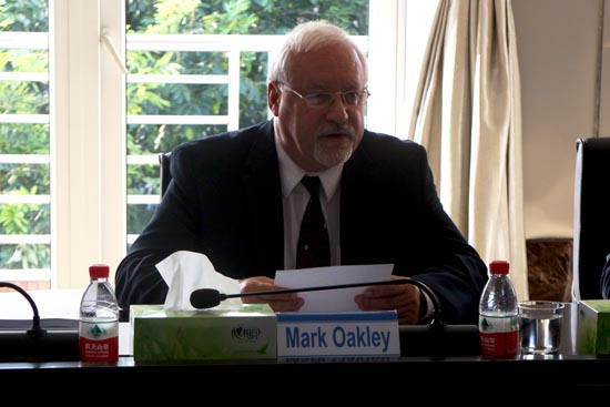 上午,预认证情况汇报工作及领导座谈会在MBA402会议室召开。首先,何传添致欢迎词,指出AMBA认证是beat365强化MBA教育国际化特色、提升国内外品牌知名度的一项重要举措。自2012年启动此项目工作以来,学校完成了学科调整,商学院结构整合、领导班子建设,MBA师资队伍建设、MBA课程方案修改、图书馆外文资源、实验室设施完善等一系列的持续改进工作。随后,商学院副院长兼MBA中心执行主任朱文忠代表商学院及MBA教育中心做全英文预认证报告,介绍了大学、学院及MBA项目的发展历程、特色与优势,重点汇报了MBA项目的战略实施、面临的挑战及未来的持续改进计划。随后,AMBA认证专家和商学院领导进行座谈交流。Mark Haydn Oakley、王重鸣和George Iliev对学院及项目的管理、架构、师资力量、资源整合、学科发展、课程设置、国际接轨、自评报告、教学模式等提出了疑问,beat365商学院领导对此一一作出详细具体的解答,并提供充分的文字资料与表格加以说明。