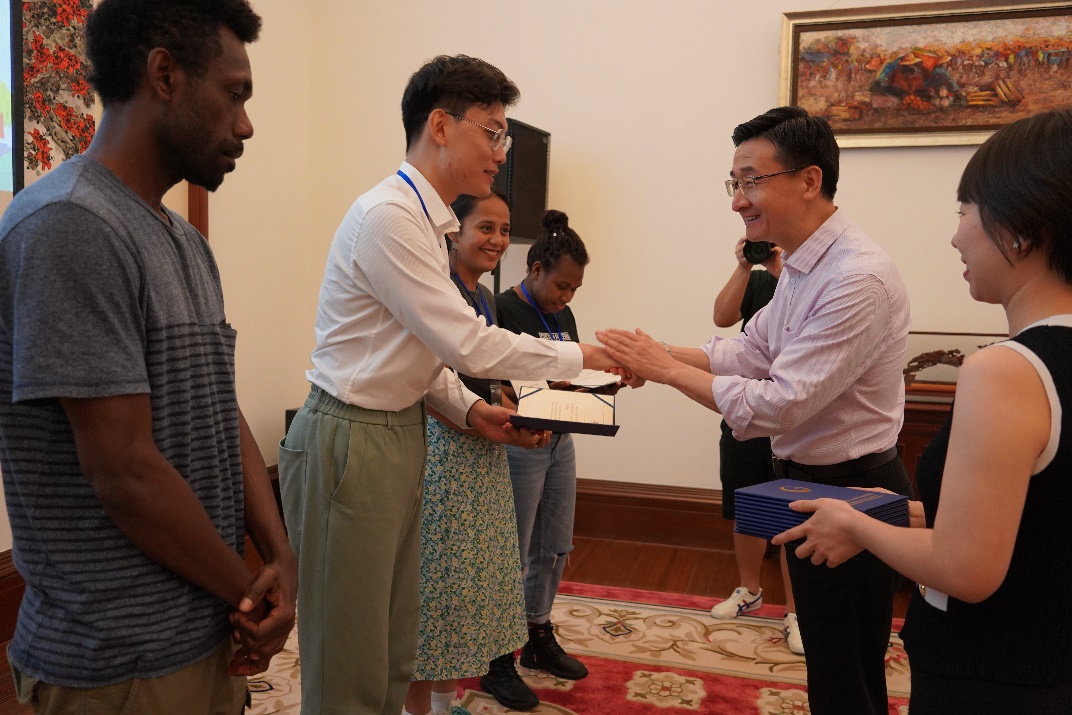 广东省人民对外友好协会副会长仓峰为董适天颁发研学证书