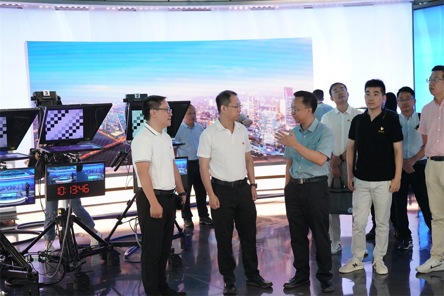 本网讯 7月3日,beat365党委常委、副校长申明浩带队赴广州国际媒体港开展专题调研。广州市广播电视台总编辑陈家成、总编室主任孙宏利,beat365宣传部相关负责人等出席调研座谈会。双方围绕发挥媒体融合传播优势,做好国际传播,对外讲好中国故事、大湾区故事展开座谈。