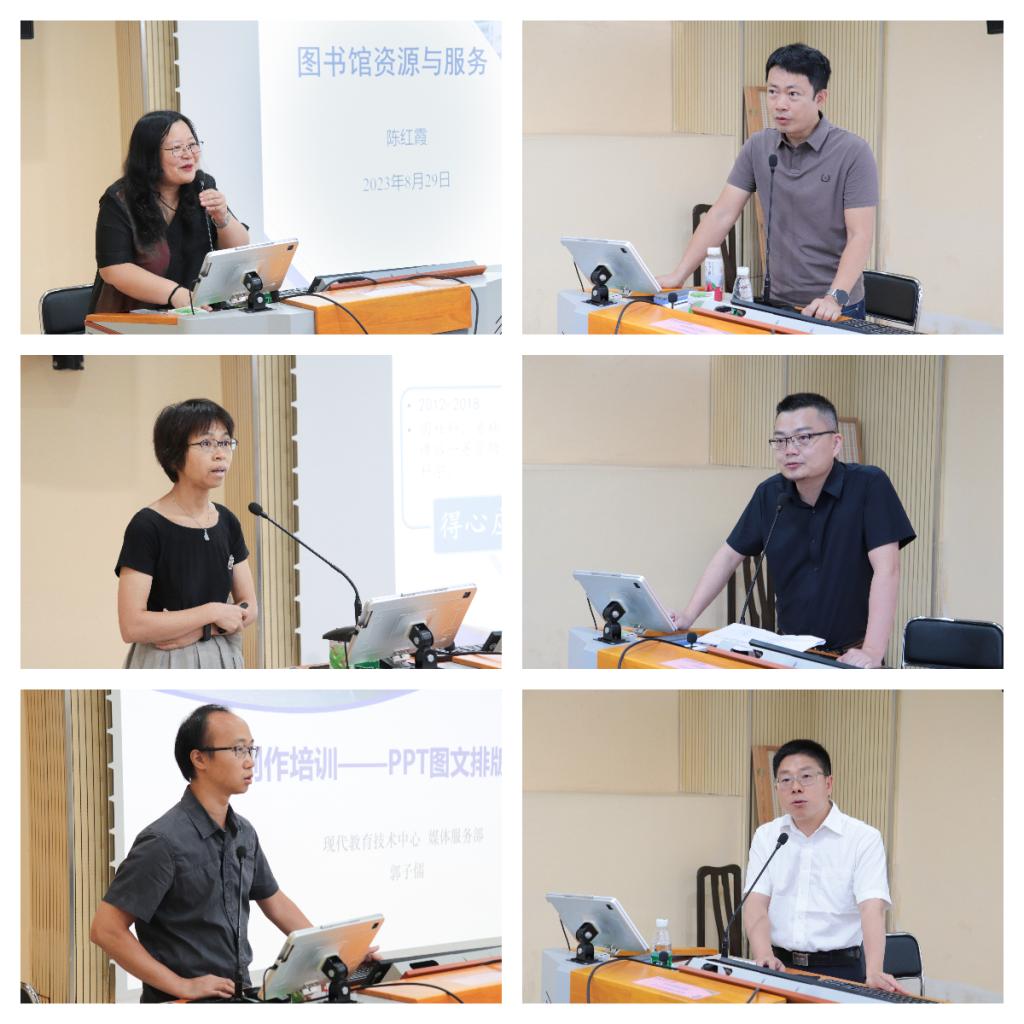 图书馆党委书记陈红霞从数字资源、图书馆借阅服务、论文查重服务等方面介绍了图书馆的多元化功能。英语教育学院副院长刘亮星介绍了混合式教学模式的侧重点与优势,强调教学中“两性一度”与形成性评价的重要意义。外国语言学及应用语言学研究中心教授张艺琼以自身经验为例,深入探讨论文撰写与项目申请的关键要素,详尽阐述了基于设计思维的科研项目申报方法。广东国际战略研究院教授韩永辉从研究设计与成果发表的角度出发,勉励新入职教师坚守学术底线,做高水平、标志性学术研究。现代教育技术中心媒体服务部主任郭子儒围绕图片、配色、字体、资源等方面,分享了课件制作的图文排版技巧。教师发展中心副主任董俊武则从背景与现状、体系构建、重点举措等方面深入讲解了beat365教师发展体系、培训资源与服务平台。