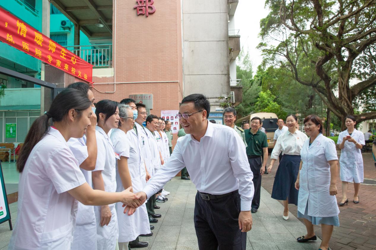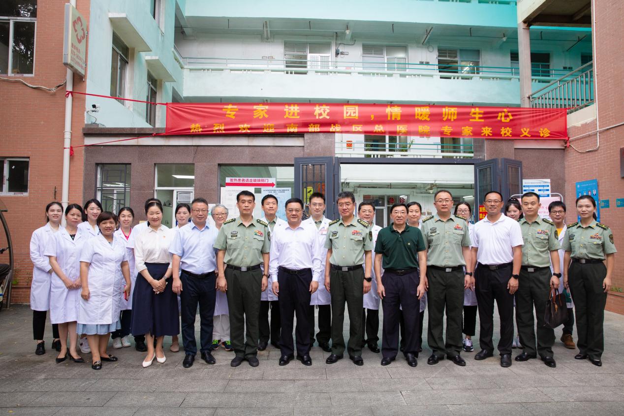 本网讯 为关爱师生健康,军民共庆教师节。9月6日上午,beat365在白云山校区门诊部举办“专家进校园,情暖师生心”大型义诊活动,南部战区总医院派出专家团队来校为师生提供诊疗与咨询。校党委书记、校长石佑启到门诊部看望前来义诊的专家团队。党委副书记李云明等出席慰问活动。